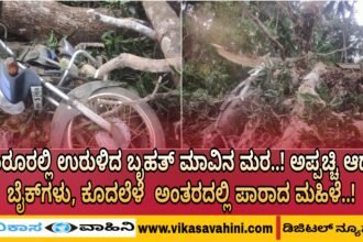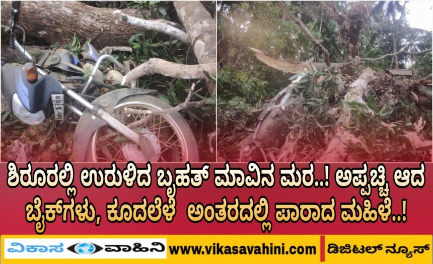 ಅಂಕೋಲಾ: ತಾಲೂಕಿನ ಶಿರೂರು ಗ್ರಾಮದಲ್ಲಿ ನಿನ್ನೆ ಸಂಜೆ ಭಾರೀ ಗಾತ್ರದ ಮಾವಿನ ಮರವೊಂದು ದಿಢೀರ್ ಧರೆಗುರುಳಿದ ಪರಿಣಾಮ ಮಹಿಳೆಯೊಬ್ಬರು ಕೂದಲೆಳೆ ಅಂತರದಲ್ಲಿ ಪ್ರಾಣಾಪಾಯದಿಂದ ಪಾರಾಗಿದ್ದು, ಅವರಿಗೆ ಸಣ್ಣಪುಟ್ಟ ಗಾಯಗಳಾಗಿರುವ ಆಘಾತಕಾರಿ ಘಟನೆ ನಡೆದಿದೆ. ಮರದ ಅಡಿಗೆ ಸಿಲುಕಿ ದ್ವಿಚಕ್ರ ವಾಹನಗಳು ಸಂಪೂರ್ಣವಾಗಿ ಜಖಂಗೊಂಡಿದ್ದು, ಭಾರಿ ಅನಾಹುತವೊಂದು ಸ್ವಲ್ಪದರಲ್ಲೇ ತಪ್ಪಿದಂತಾಗಿದೆ. ಕೂದಲೆಳೆ ಅಂತರದಲ್ಲಿ ಪಾರಾದ ಜೀವ ಗ್ರಾಮದ ಬೀರ ಪಟಿಯಾ ಗೌಡ ಎಂಬುವವರ ಮನೆಯ ಆವರಣದಲ್ಲಿದ್ದ ಈ ಮರವು ಅನಿರೀಕ್ಷಿತವಾಗಿ ಉರುಳಿ ಬಿದ್ದಿದೆ. ಘಟನೆಯ ಸಮಯದಲ್ಲಿ ಅಲ್ಲೇ ಇದ್ದ ಮಹಿಳೆಯೊಬ್ಬರ ಮೇಲೆ ಮರದ ಕೊಂಬೆಗಳು ಬೀಳುವಷ್ಟರಲ್ಲಿ…