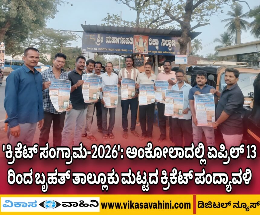 ಅಂಕೋಲಾ: ಅಂಕೋಲಾ ತಾಲುಕು ರಿಕ್ಷಾ ಚಾಲಕರು ಮತ್ತು ಮಾಲಕರ ಸಂಘದ ವತಿಯಿಂದ ಇದೇ ಏಪ್ರಿಲ್ 13 ರಿಂದ 16 ರವರೆಗೆ ತಾಲ್ಲೂಕಿನ ಸಮಸ್ತ ಜನತೆ ಹಾಗೂ ಯುವ ಪ್ರತಿಭೆಗಳಿಗಾಗಿ 'ಕ್ರಿಕೆಟ್ ಸಂಗ್ರಾಮ-2026' ಬೃಹತ್ ಕ್ರಿಕೆಟ್ ಪಂದ್ಯಾವಳಿಯನ್ನು ಆಯೋಜಿಸಲಾಗಿದೆ ಎಂದು ಸಂಘದ ಅಧ್ಯಕ್ಷರಾದ ಶ್ರೀ ಗಜು ಆರ್. ನಾಯ್ಕ ತಿಳಿಸಿದರು. ಇಂದು ಪಟ್ಟಣದ ಶ್ರೀ ಮಹಾಗಣಪತಿ ರಿಕ್ಷಾ ನಿಲ್ದಾಣದಲ್ಲಿ ಪಂದ್ಯಾವಳಿಯ ಕುರಿತು ಪತ್ರಿಕಾ ಹೇಳಿಕೆ ನೀಡಿ, ಹೆಚ್ಚಿನ ವಿವರಗಳನ್ನು ಹಂಚಿಕೊಂಡರು. ಪಂದ್ಯಾವಳಿಯ ಪ್ರಮುಖ ಅಂಶಗಳು: ಯಾರಿಗೆ ಅವಕಾಶ?: ಈ ಪಂದ್ಯಾವಳಿಯಲ್ಲಿ ತಾಲ್ಲೂಕಿನಾದ್ಯಂತ ಇರುವ ಗ್ರಾಮ ಪಂಚಾಯತ್ಗಳು…