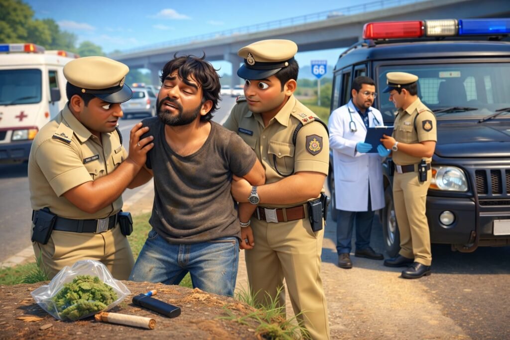 ಗಾಂಜಾ ಮತ್ತಿನಲ್ಲಿ ಸಿಕ್ಕಿಬಿದ್ದ ಯುವಕನನ್ನು ಪೊಲೀಸರು ತಕ್ಷಣವೇ ವಶಕ್ಕೆ ಪಡೆದು ವೈದ್ಯಕೀಯ ಪರೀಕ್ಷೆಗೆ ಒಳಪಡಿಸಿದ್ದಾರೆ. ವೈದ್ಯಾಧಿಕಾರಿಗಳು ನೀಡಿದ ವರದಿಯಲ್ಲಿ ಆತನ ದೇಹದಲ್ಲಿ ‘ಟೆಟ್ರಾಹೈಡ್ರೋಕ್ಯಾನಬಿನಾಲ್’ (THC) ಅಂಶ ಇರುವುದು, ಅಂದರೆ ಗಾಂಜಾ ಸೇವನೆ ಮಾಡಿರುವುದು ಪಾಸಿಟಿವ್ ಎಂದು ದೃಢಪಟ್ಟಿದೆ. ಈ ವೈದ್ಯಕೀಯ ವರದಿಯ ಆಧಾರದ ಮೇಲೆ, ಕಾರವಾರ ಶಹರಾ ಪೊಲೀಸ್ ಠಾಣೆಯ ಉಪನಿರೀಕ್ಷಕರಾದ ಶ್ರೀ ಉದ್ದಪ್ಪ ಅಶೋಕ್ ಧರೆಪ್ಪನವರ್ ಅವರು ಸ್ವಯಂ-ಪ್ರೇರಿತವಾಗಿ ದೂರು ದಾಖಲಿಸಿಕೊಂಡಿದ್ದಾರೆ.