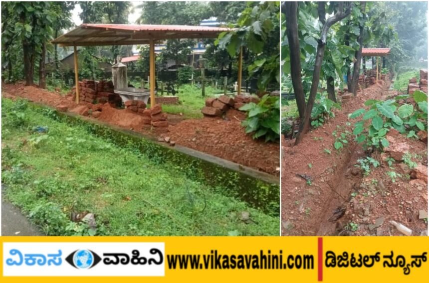 ಅಂಕೋಲಾ, ಜುಲೈ 19: ಅಂಕೋಲಾ ಪುರಸಭೆ ವ್ಯಾಪ್ತಿಯ ಕೋಟೆವಾಡದ ಬಳಿ ಇರುವ ಕ್ರಿಶ್ಚಿಯನ್ ಸಮುದಾಯದ ಸ್ಮಶಾನ ಪ್ರಸ್ತುತ ಸಾರ್ವಜನಿಕ ಸಮಸ್ಯೆಗೆ ಕಾರಣವಾಗುತ್ತಿದೆ. ಈ ಸ್ಮಶಾನದ ಸುತ್ತಲಿದ್ದ ಹಳೆ ಕಲ್ಲಿನ ಕಾಂಪೌಂಡ್ ಕಳೆದ ಅಂದಾಜು 2 ತಿಂಗಳ ಹಿಂದೆ ತೆರವುಗೊಳಿಸಲಾಗಿದೆ. ಆದರೆ, ಹೊಸ ಕಾಂಪೌಂಡ್ ನಿರ್ಮಾಣ ಕಾರ್ಯ ಆರಂಭವಾದರೂ ಮಧ್ಯದಲ್ಲಿ ನಿಲ್ಲಿಸಿದ್ದು, ಇತ್ತೀಚೆಗೆ ಸ್ಥಳೀಯ ನಿವಾಸಿಗಳ ಆತಂಕಕ್ಕೆ ಕಾರಣವಾಗಿದೆ.