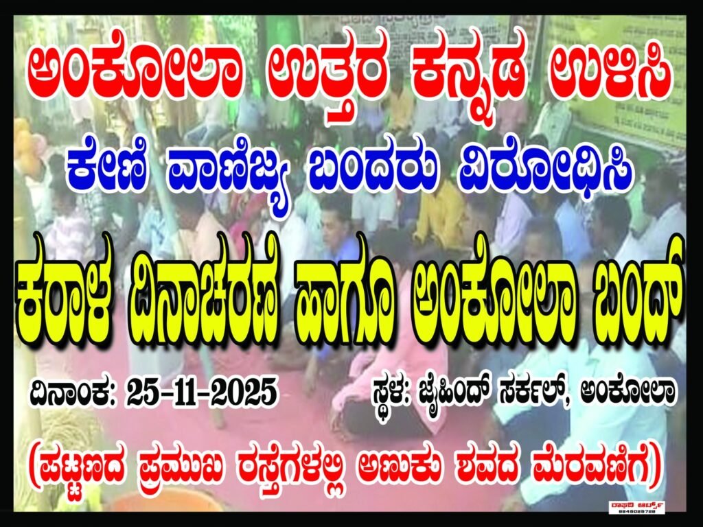 ಅಂಕೋಲಾ: ಕೇಣಿ ವಾಣಿಜ್ಯ ಬಂದರು ನಿರ್ಮಾಣಕ್ಕೆ ವಿರೋಧವಾಗಿ ಹೋರಾಟ ಸಮಿತಿಯು ನವೆಂಬರ್ 25ರಂದು ಅಂಕೋಲಾ ಬಂದ್ಗೆ ಕರೆ ನೀಡಿರುವ ಹಿನ್ನೆಲೆಯಲ್ಲಿ, ಕಾರ್ಯನಿರತ ಪತ್ರಕರ್ತರ ಧ್ವನಿ ಅಂಕೋಲಾ ಸಂಘವು ಈ ಬಂದ್ಗೆ ಸಂಪೂರ್ಣ ಬೆಂಬಲ ಘೋಷಿಸಿದೆ.