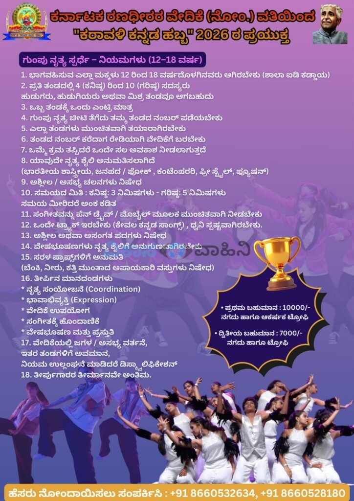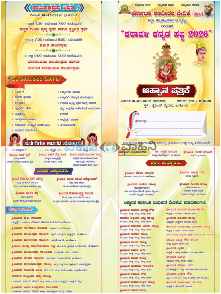 ಅಂಕೋಲಾ: ಕನ್ನಡ ನಾಡು-ನುಡಿಯ ಕಂಪನ್ನು ಪಸರಿಸುವ ಮತ್ತು ಸ್ಥಳೀಯ ಕಲಾ ವೈಭವವನ್ನು ಅನಾವರಣಗೊಳಿಸುವ ಮಹತ್ವಾಕಾಂಕ್ಷೆಯೊಂದಿಗೆ, ಕರ್ನಾಟಕ ರಣಧೀರರ ವೇದಿಕೆಯ ವತಿಯಿಂದ ಇದೇ ಫೆಬ್ರವರಿ 1 ರಂದು ಪಟ್ಟಣದ ಜೈಹಿಂದ್ ಮೈದಾನದಲ್ಲಿ ‘ಕರಾವಳಿ ಕನ್ನಡ ಹಬ್ಬ’ವನ್ನು ಆಯೋಜಿಸಲಾಗಿದೆ.