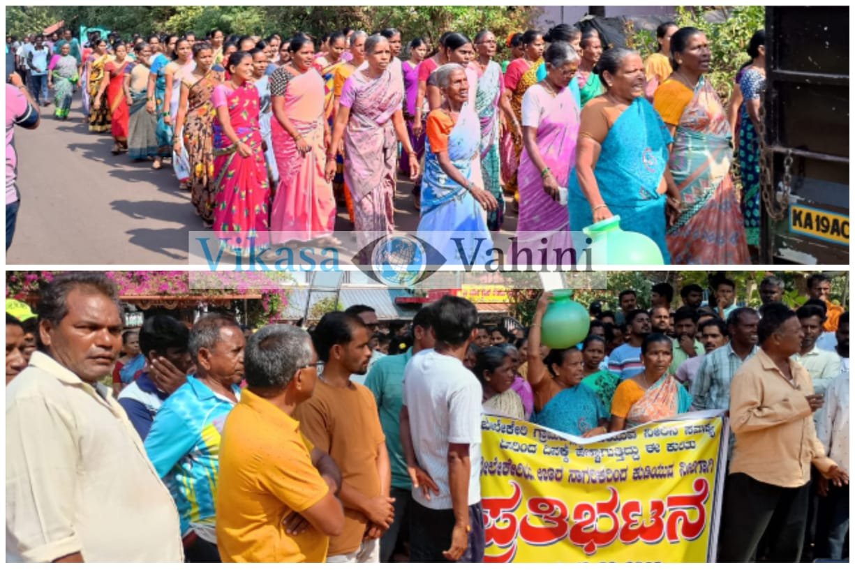 ಸುಡುವ ಬಿಸಿಲಿನಲ್ಲೂ ಬೆಲೇಕೇರಿಯಲ್ಲಿ ನೀರಿಗಾಗಿ ಹೋರಾಟ, ಪೊಲೀಸರ ಬಿಗಿ ಬಂದೋಬಸ್ತ್ : ಪಂಚಾಯತ ಅಧಿಕಾರಿಗಳು ಹಾಗೂ ಸದಸ್ಯರಿಗೆ ಪ್ರತಿಭಟನಾಕಾರರಿಂದ ದಿಕ್ಕಾರ ಘೋಷಣೆ, ನೀರಿನ ಸಮಸ್ಯೆ ಬಗೆಹರಿಯದಿದ್ದರೆ 15 ದಿನದ ನಂತರ ಮತ್ತೆ ಪ್ರತಿಭಟನೆಯ ಎಚ್ಚರಿಕೆ..